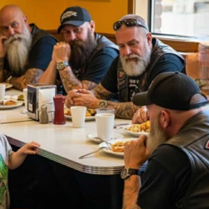 In a cozy diner nestled in a peaceful small town, a group of bikers settled into a corner booth after hours on the open road. Their leather…
